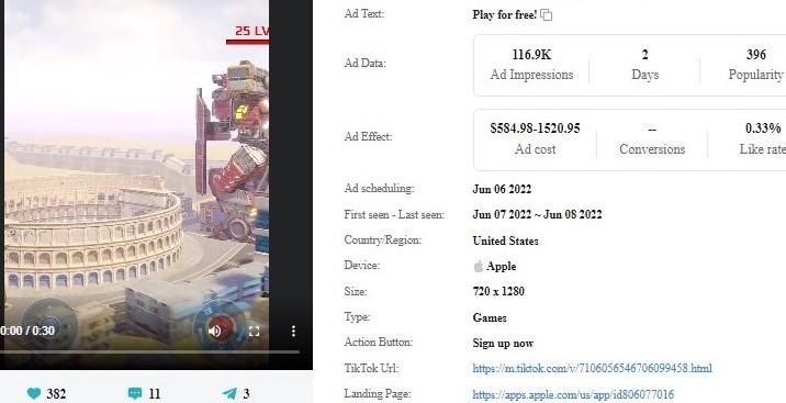 PipiAds offers a detailed analysis of the ads, allowing you to track individual ad performance on the supported platforms